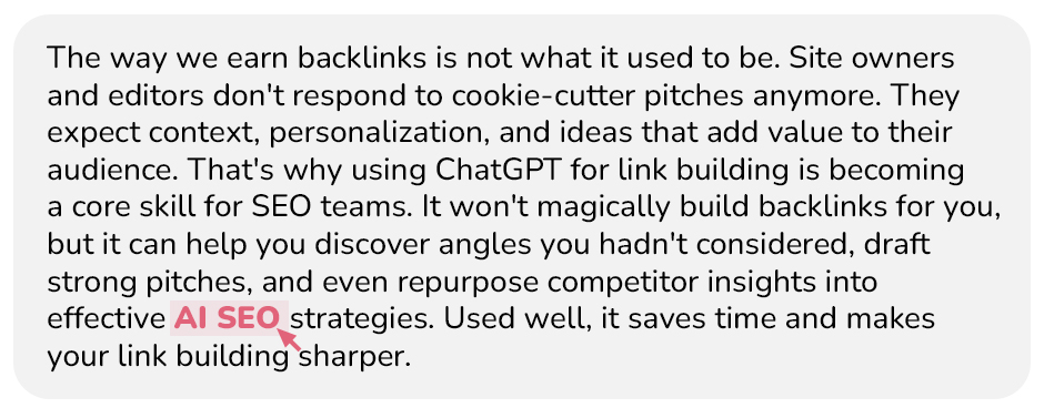 Pro tip: Treat journalist outreach like link prospecting. Don’t just pitch your usual way. Research the reporter’s past articles, mirror their writing tone, and offer a concise, quotable insight they can paste in without editing. That will make your chances of being featured much higher. Plus, you’ll start building real relationships with writers who may link to you again later.