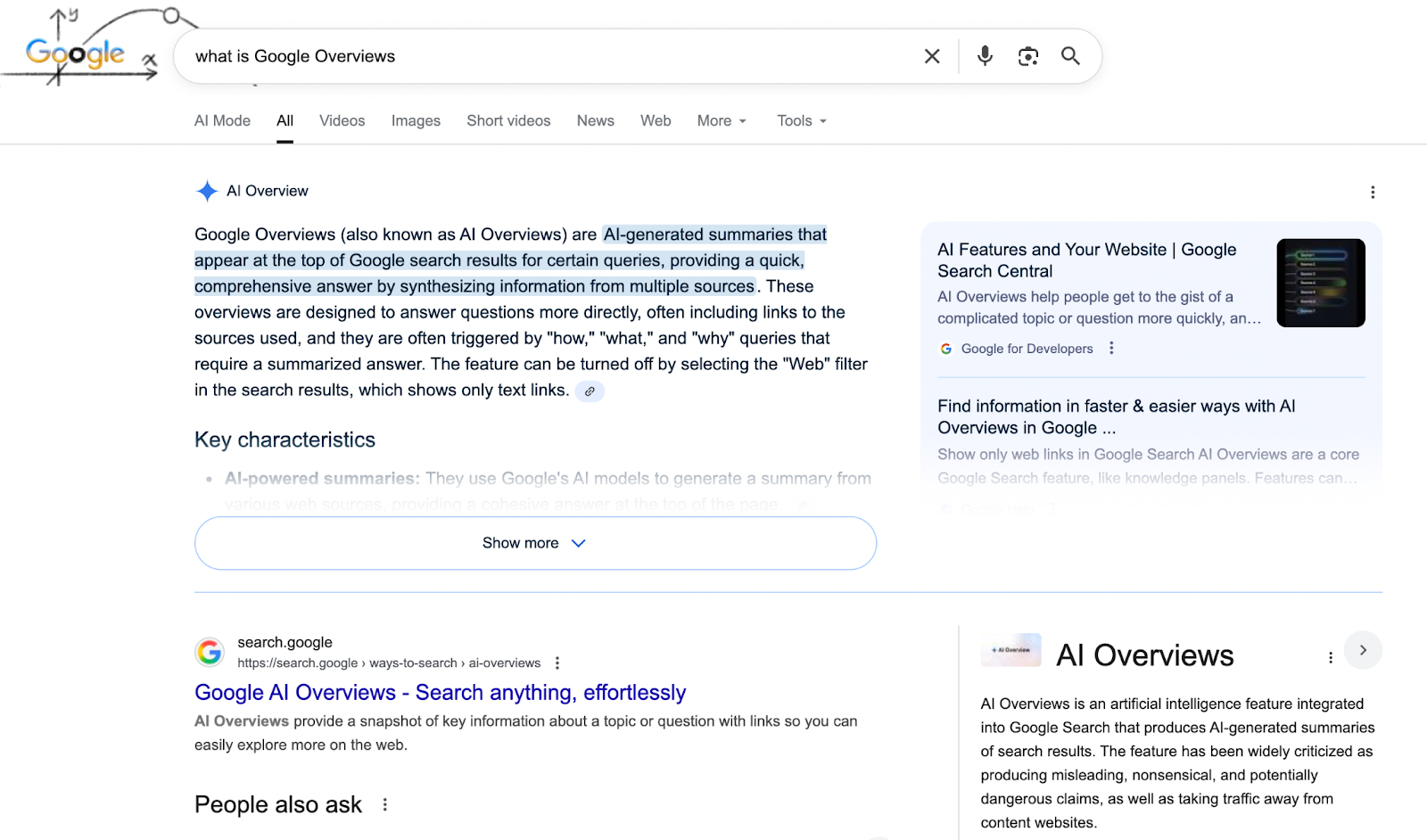 AI Overviews results in Google search.
