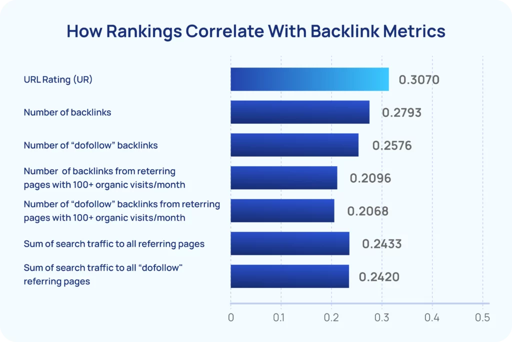 Studies back this up repeatedly. For example, in a large-scale analysis of 11.8 million Google search results, Backlinko found that pages ranking as number one have an average of 3.8x more backlinks than lower positions. Most of those links are dofollow, since only these pass PageRank and influence rankings.