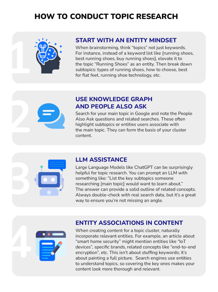 Remember, an entity-based strategy also aligns with voice and AI searches. Users may ask broad questions (“Tell me about improving home security”) and an AI will draw on content that has broad yet detailed coverage. By building out authoritative topic hubs, you increase your chances of being the source an AI agent cites or summarizes.