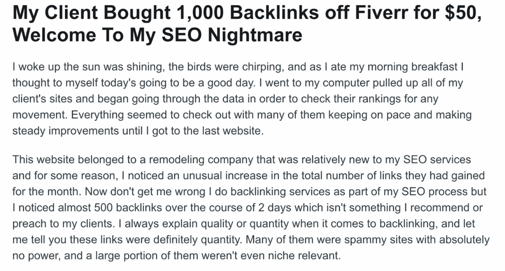 You still don’t want to get 50 links for $5 from Fiverr. It’s a bad strategy at any stage.