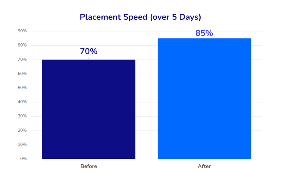 - Speed of placement: previously, only 70% of requests were published within 5 days, now it’s 85%.