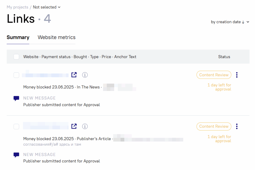 This feature eliminates back-and-forth chats with publishers and unclear expectations. Instead of guessing what the content will look like, you see it upfront, confirm it matches your requirements, and stay fully in control: ensuring that the content meets your standards, reducing mistakes and improving the overall quality of your link placements.