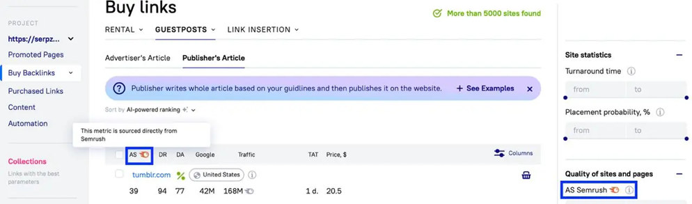 How to access: Go to your Serpzilla dashboard → Buy Links → ‘Guest Posts’ or ‘Link Insertion’ → select AI-Powered Ranking to apply the smart filter.